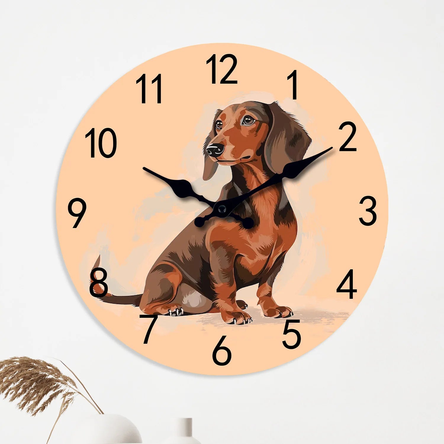 Transformez votre intérieur avec cette horloge murale créative en bois au motif teckel original. Un accessoire décoratif unique qui allie fonctionnalité et style pour célébrer votre passion pour cette race attachante !